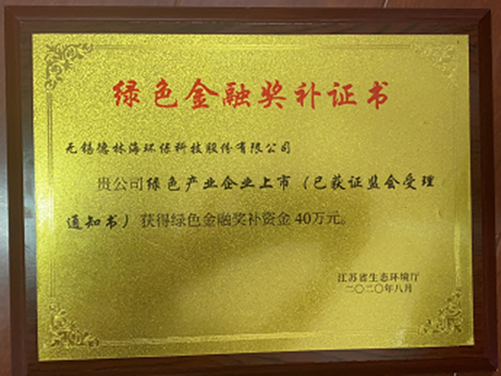 喜訊:我司榮獲江蘇省生態(tài)環(huán)境廳綠色金融獎補(bǔ)資金